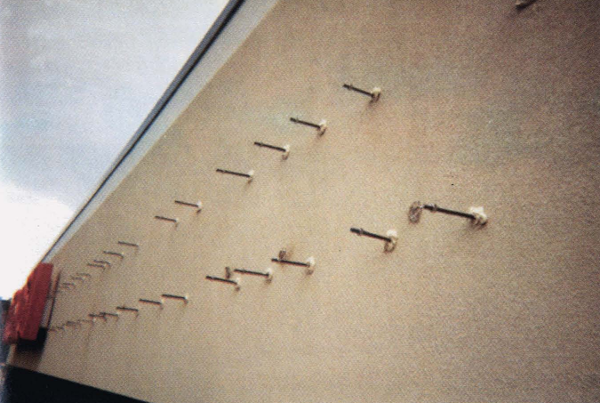 Fig. 8: These all-thread mounting bolts will support a set of channel letters that incorporates back-mounted integral transformers. This installation requires the letter mounts to stand-off approximately 4 inches from the wall surface. These letters are both front- and back-lit; however, through-bolts may also be used when mounting standard channel letters on irregular or insubstantial surfaces.